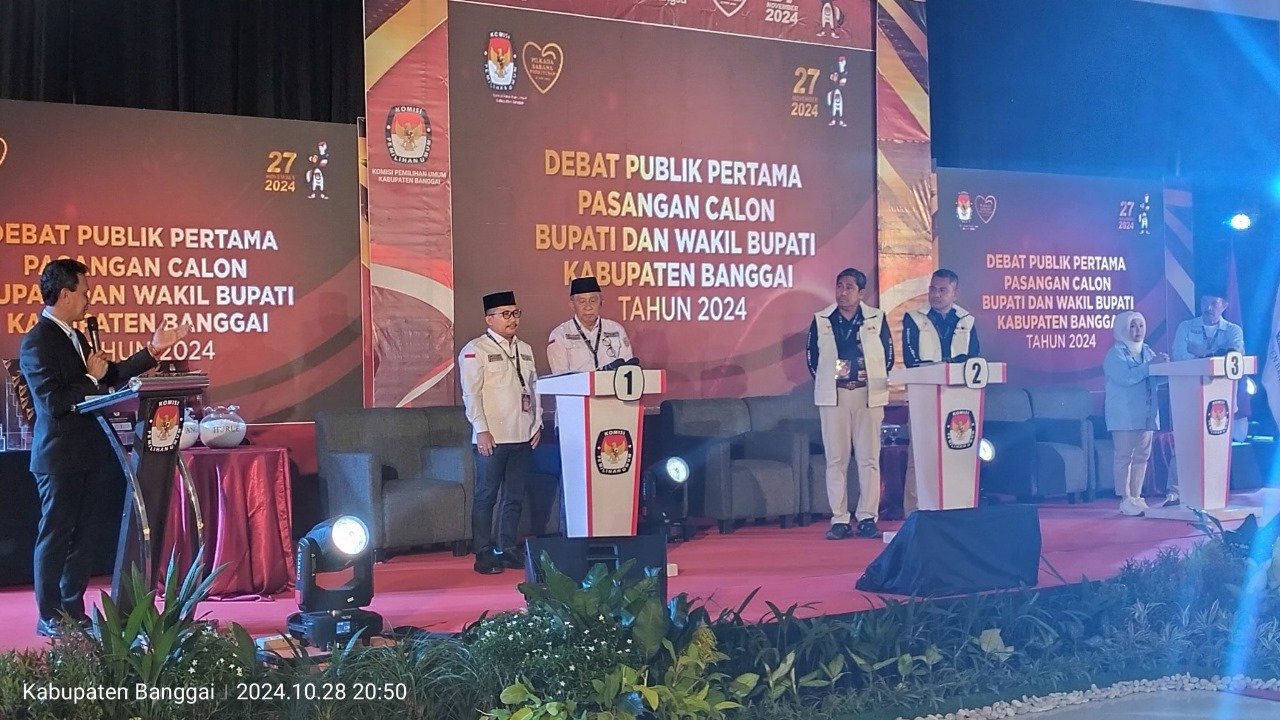 Dalam debat publik putaran pertama yang berlangsung di Hotel Estrella, Luwuk, Senin (28/10/2024) calon Bupati dan Wakil Bupati Banggai, Amirudin Tamoreka dan Furqanuddin, membahas strategi tata kelola pemerintahan yang inklusif dan bebas dari praktik politik balas budi dan dendam.