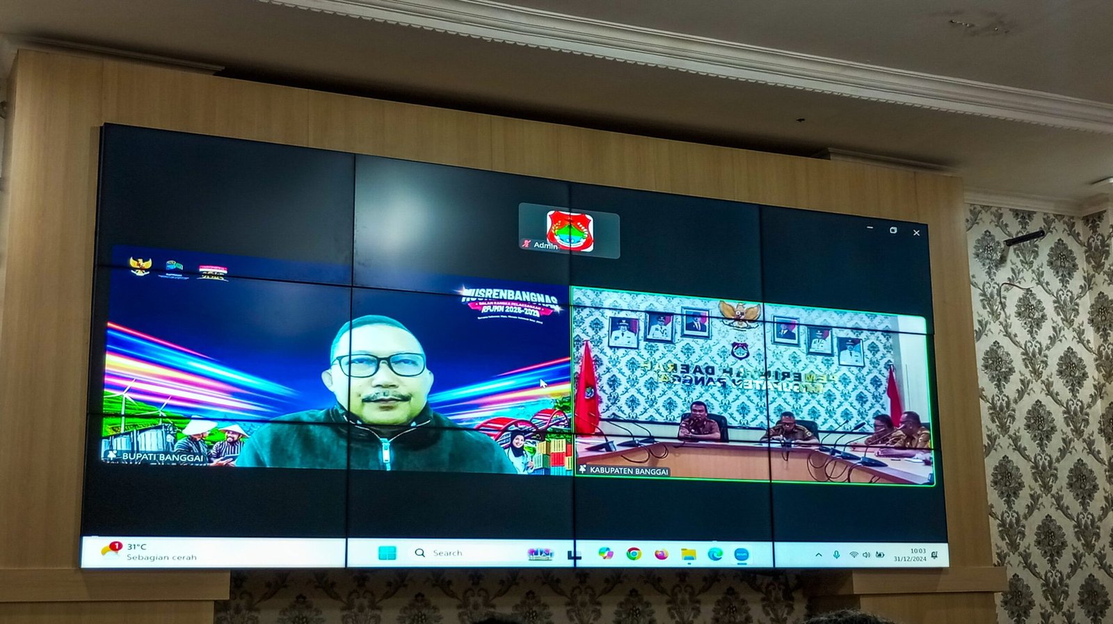 Bupati Banggai Ir. H. Amirudin, MM, AIFO yang hadir secara virtual melalui Zoom Meeting karena melaksanakan tugas di luar daerah, yakni menghadiri Musyawarah Perencanaan Pembangunan Nasional (Musrenbangnas) di Jakarta. Dimana dalam penyampaiannya, ia menekankan bahwa pemerintahan tidak hanya bergerak, tetapi melangkah dengan kecepatan untuk membawa perubahan bagi masyarakat.