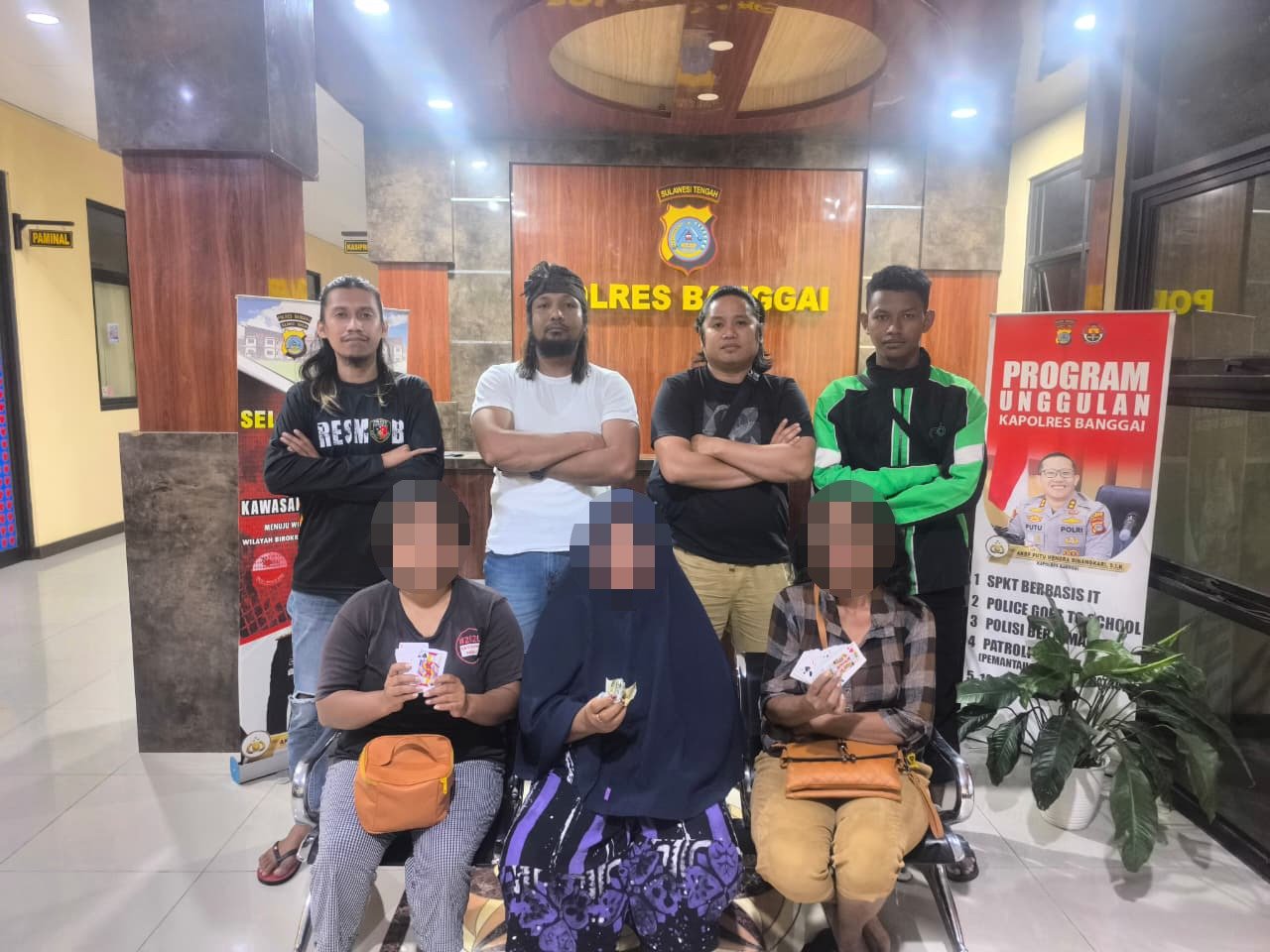Tim Resmob Tompotika Polres Banggai mengamankan tiga emak-emak lantaran terlibat tindak pidana perjudian remi di Kelurahan Kilongan, Kecamatan Luwuk Utara, Selasa (19/08/2025) sore.