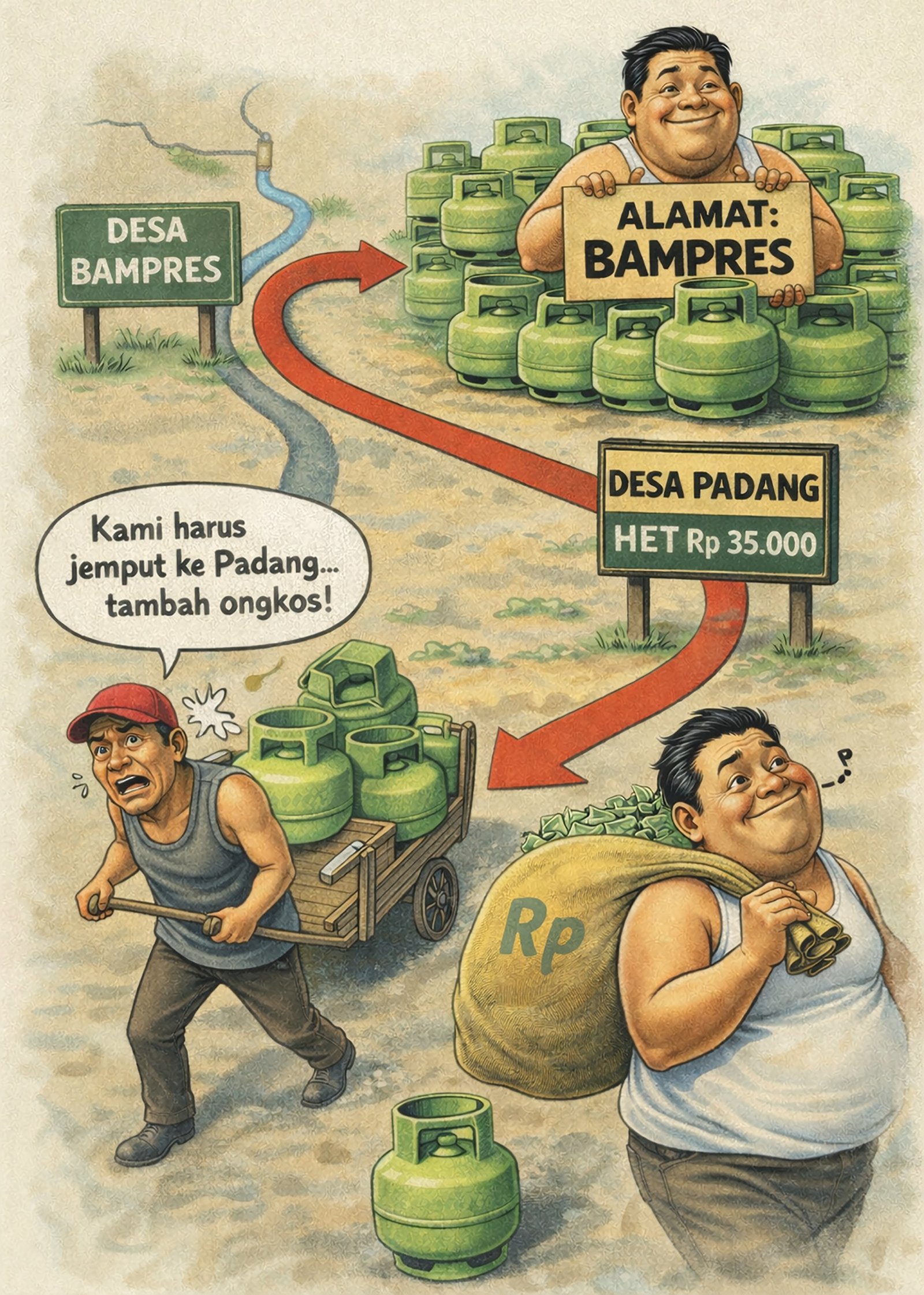Akibatnya, pangkalan harus menanggung biaya tambahan pengangkutan, sehingga pangkalan menaikan harga yang kemudian dikorbankan kepada masyarakat. Kondisi ini menjadi salah satu alasan harga melonjak hingga Rp35 ribu.